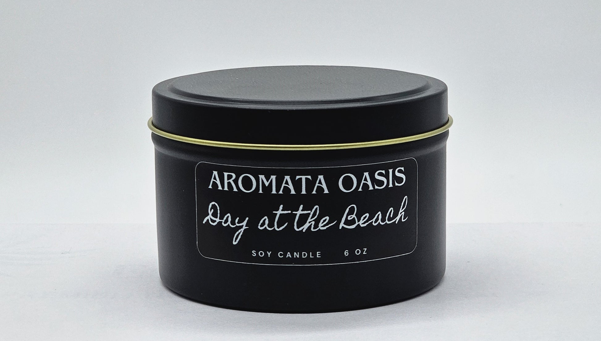 Introducing Aromata Oasis Day At The Beach Candle! Escape to a sandy coast with our scented candle, expertly crafted with a harmonious blend of citrus, palm, coconut milk, amber, teakwood, sea salt, and musk. As the candle's warm glow illuminates your space, the invigorating aroma of citrus and palm trees swaying in the ocean breeze fills the air. Coconut milk and amber add a creamy, sun-kissed depth, while teakwood and sea salt bring a smooth, woody warmth. Finished with a subtle hint of musk, this candle perfectly captures the carefree spirit of a warm day spent lounging by the ocean. Let the intoxicating scent of 'Day at the Beach' transport you to a state of tranquility and relaxation.